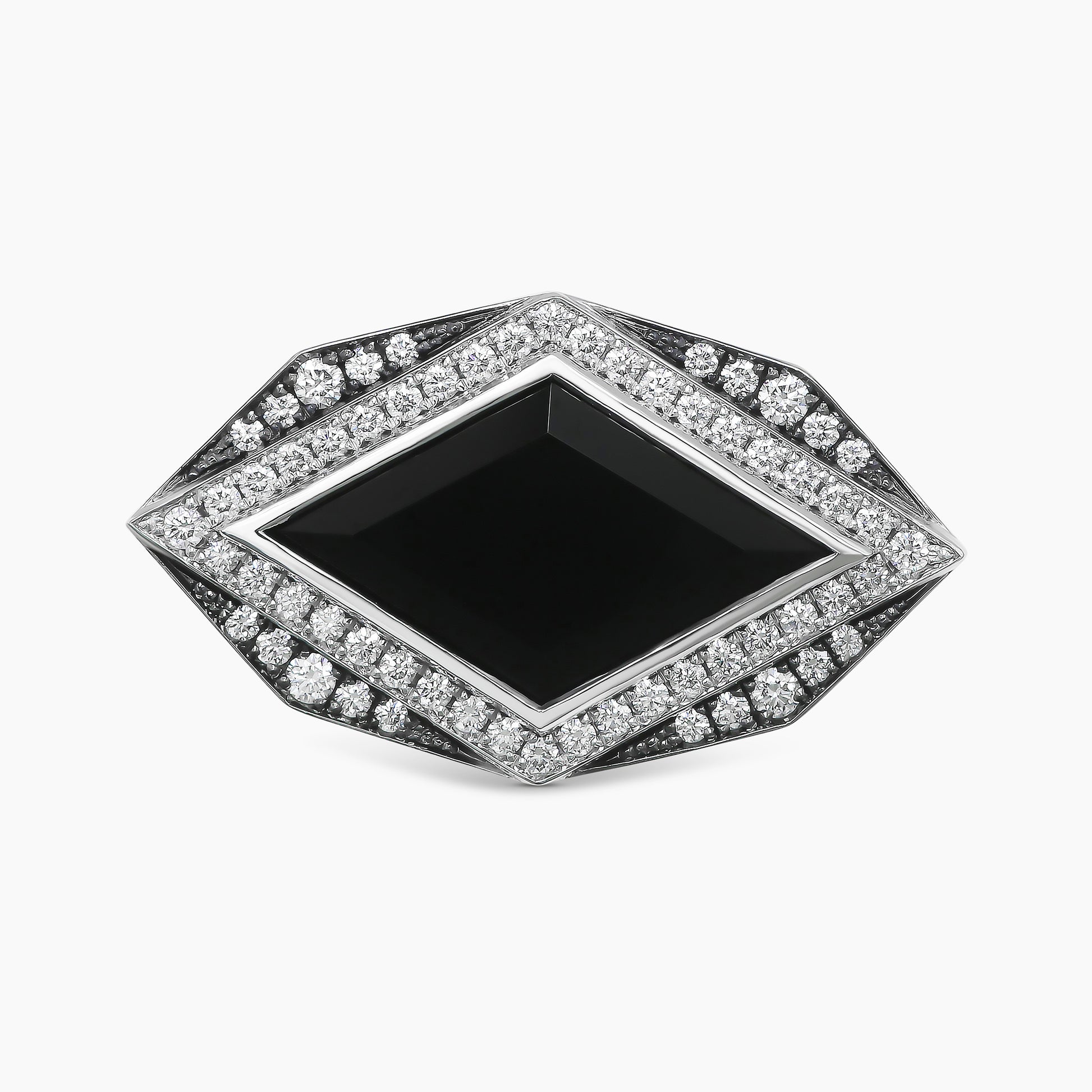 Handcrafted in 18kt gold, the Astor’s two-tier silhouette rises around a deep onyx core, each level edged with brilliant-cut natural diamonds that create a dynamic play of light and depth. A tribute to refinement and architectural ambition, where geometry meets grandeur, and sophistication finds its perfect proportion.