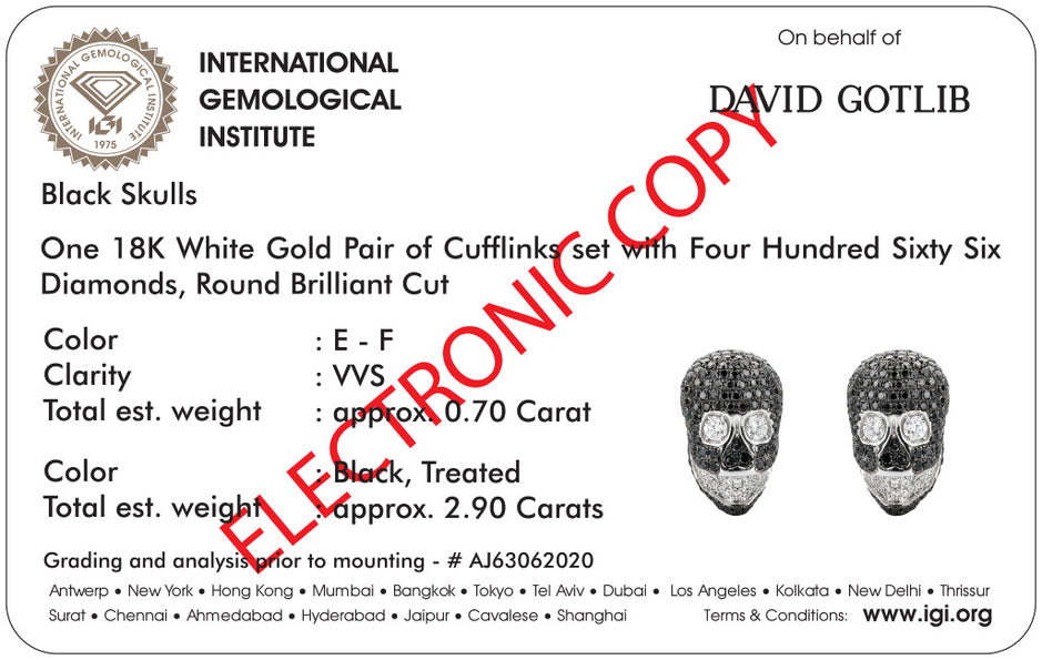 Every pair of cufflinks is delivered in our distinctive premium box, accompanied by its IGI certificate, ensuring unparalleled quality and authenticity.