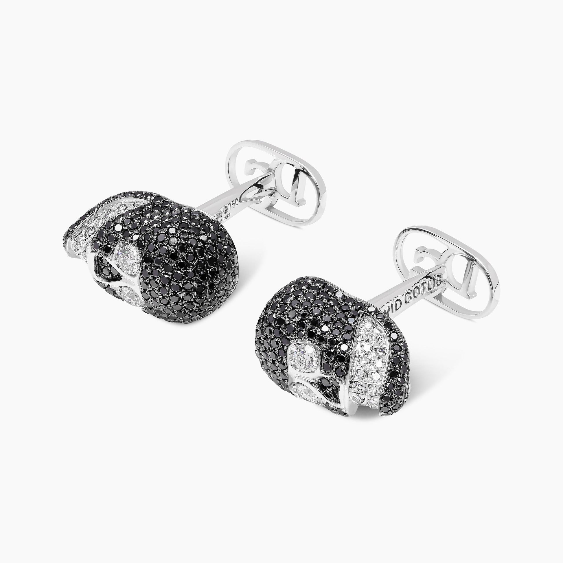 Inspired by centuries-old traditions, the skull has long symbolized strength, wisdom, and the fleeting beauty of life. These striking cufflinks honor that rich history, expertly crafted in 18kt white gold and adorned with shimmering black and white round natural diamonds. A true testament to depth, meaning, and undeniable style