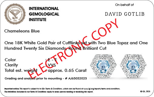 Every pair of cufflinks is delivered in our distinctive premium box, accompanied by its IGI certificate, ensuring unparalleled quality and authenticity.