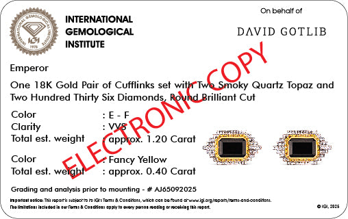 Every pair of cufflinks is delivered in our distinctive premium box, accompanied by its IGI certificate, ensuring unparalleled quality and authenticity.