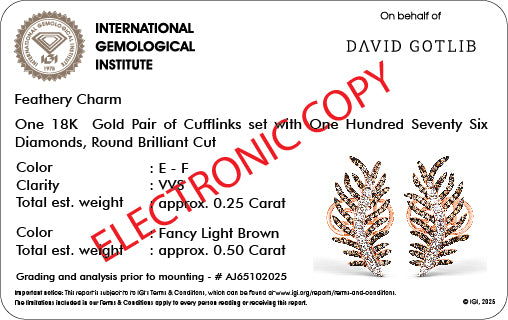 Every pair of cufflinks is delivered in our distinctive premium box, accompanied by its IGI certificate, ensuring unparalleled quality and authenticity.