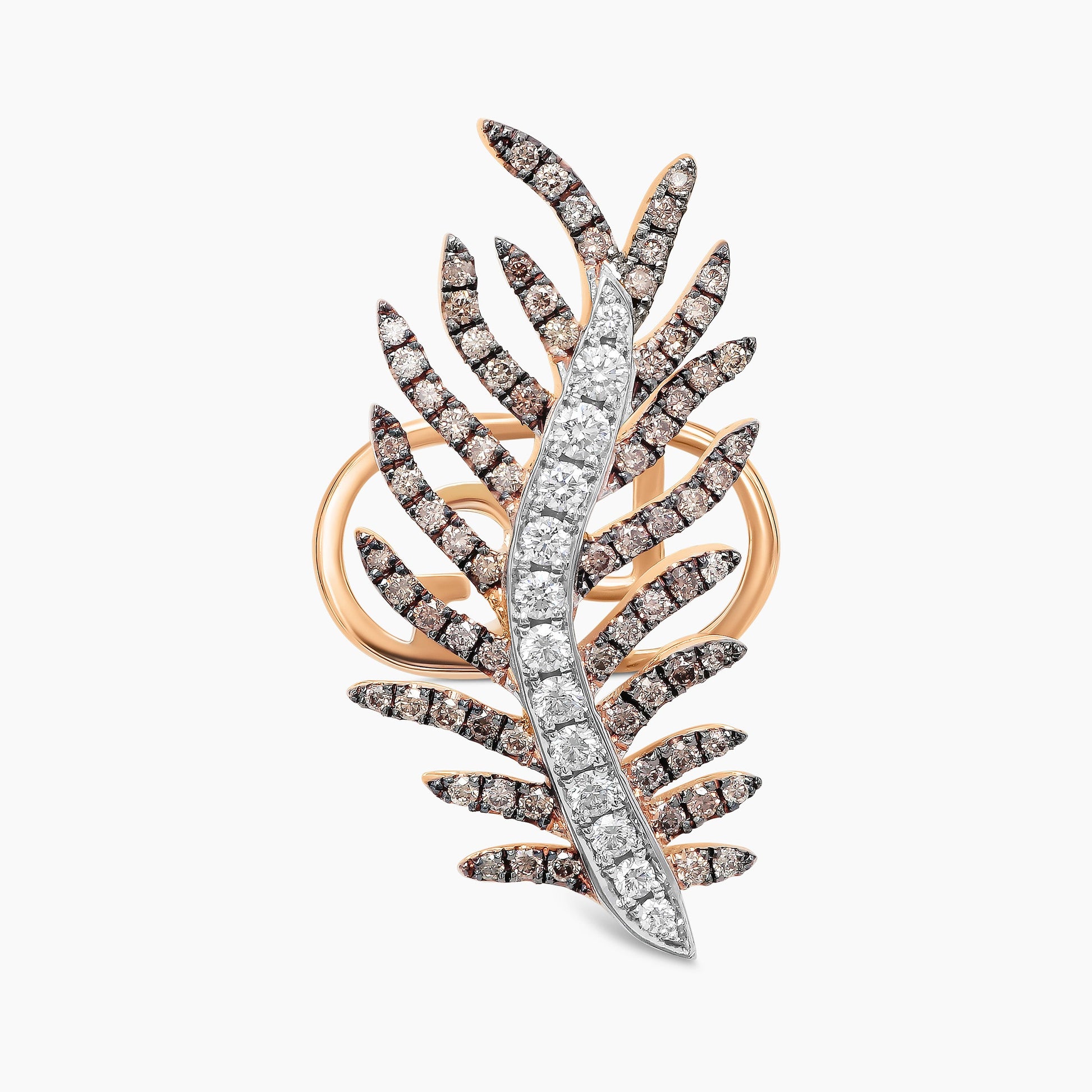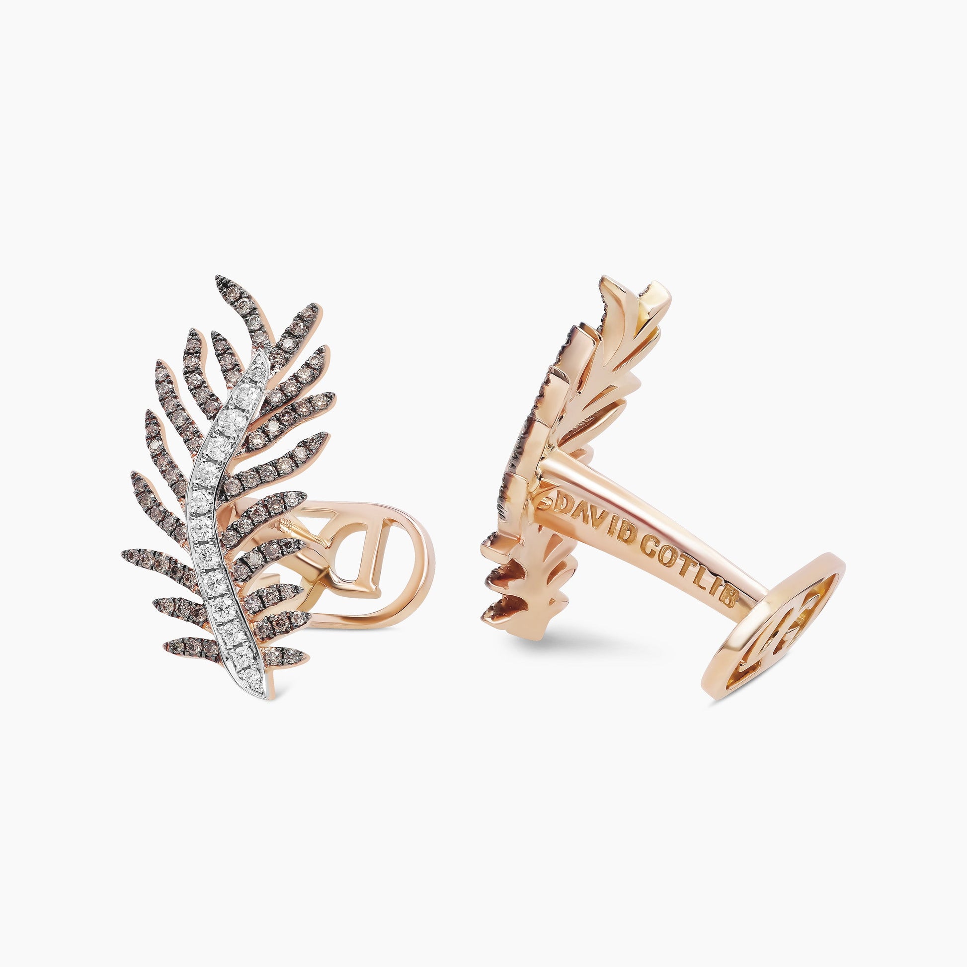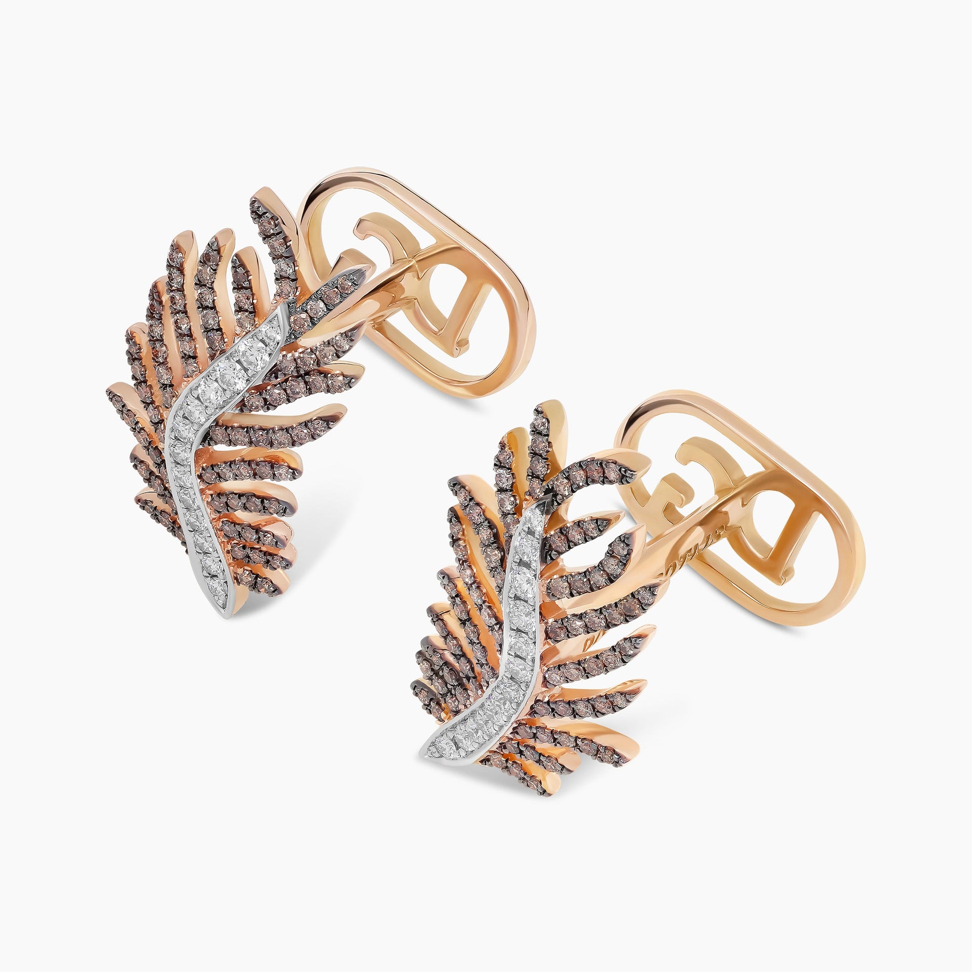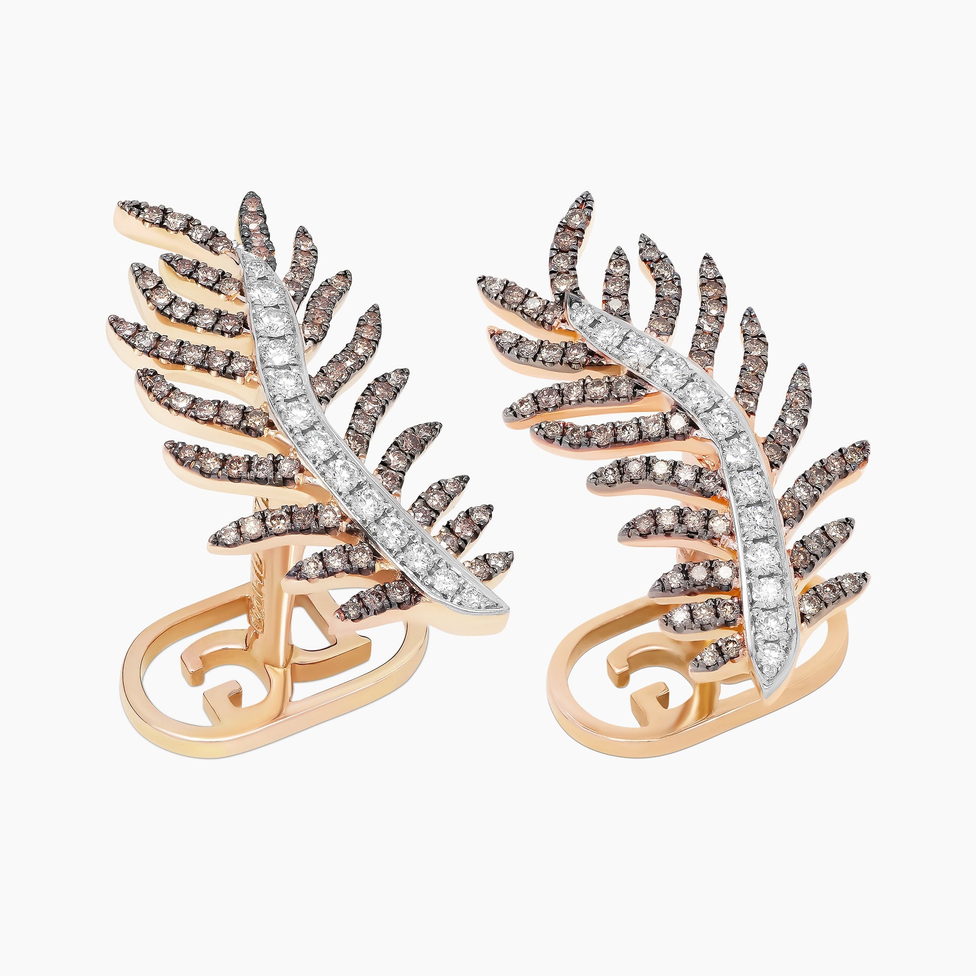 A deeply revered symbol of trust and honor, these 18kt gold feathers reveal 26 round brilliant white natural diamonds, harmoniously paired with 150 fancy brown natural diamonds. Each stone is hand-set at precise angles to maximize brilliance, showcasing a wealth of exquisite craftsmanship.