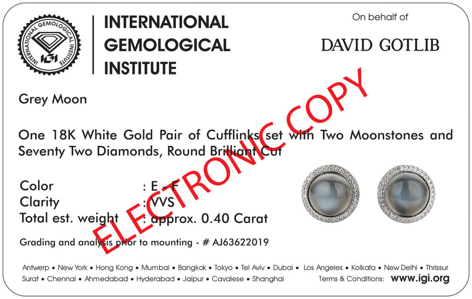 Every pair of cufflinks is delivered in our distinctive premium box, accompanied by its IGI certificate, ensuring unparalleled quality and authenticity.